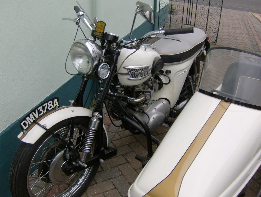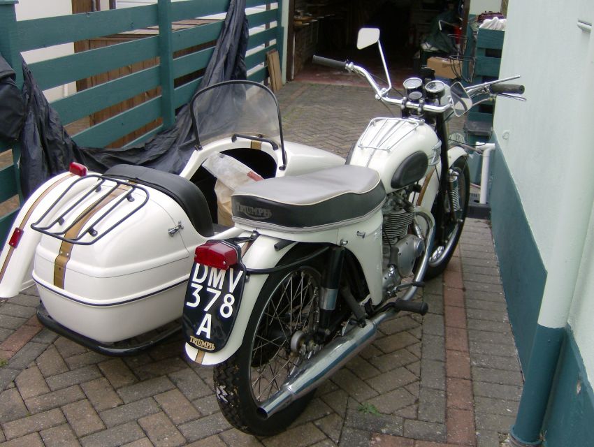 1963 Triumph 350 Tiger 90 CombinationReg. no. DMV 378AFrame no. H31489Engine no. H31489Described as an ‘entirely new 350cc sports twin with a brilliant performance that is smooth fast and easy to handle’. It was a descendant of the Twenty-One but with a specification similar to the well-known Tiger 100.  This lovely looking outfit has been well cared for and enjoyed by its enthusiastic and knowledgeable owner. It was fully restored in 1983 and the sidecar was added in 2015; work included an expensive leading link fork conversion to enhance its handling as a combination. Comes with - a current V5C, an old buff log book, all the parts required to return it to a solo motorcycle, rack, panniers and top box, spare wheels, manuals etc.**Catalogue amendment**The mudguard for the sidecar was damaged prior to collection. Please see new photograph.