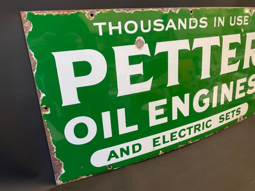 A Petter Oil Engines and Electric Sets, rectangular enamel sign with excellent gloss, 36 x 18".