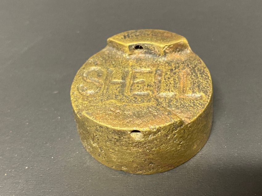A small Shell two gallon petrol can cap, 1 1/2" diameter.