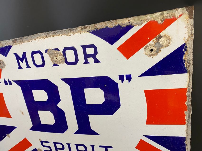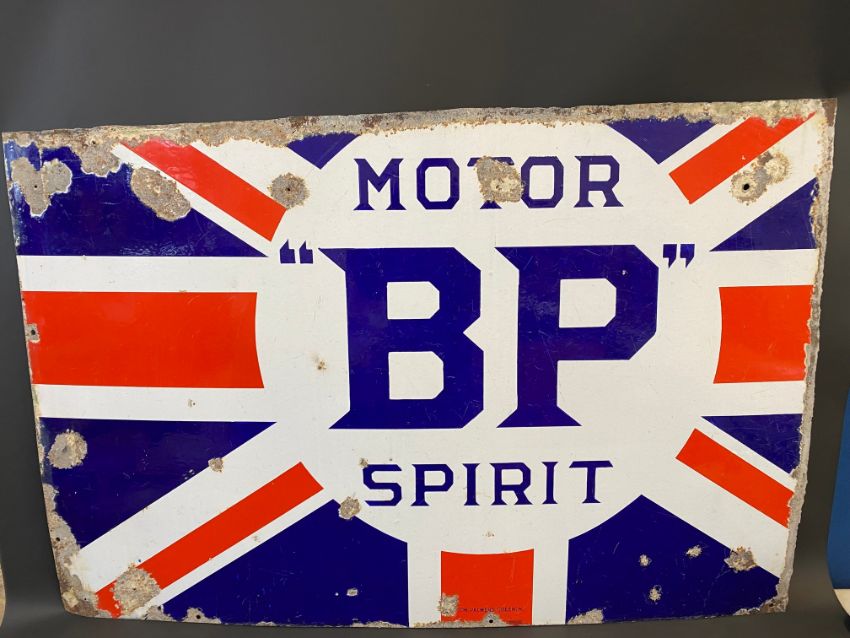 A partial BP Motor Spirit Union Jack enamel sign by Bruton of Palmers Green, 46 x 31".