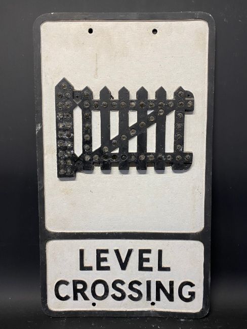 An aluminium road sign for Level Crossing with integral reflective beads, 12 x 21".