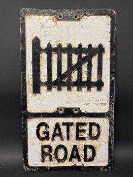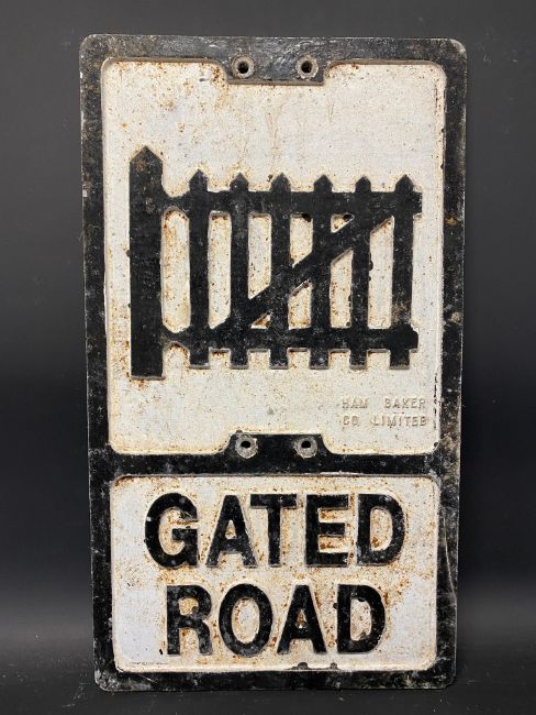 A REPRODUCTION aluminium road sign for Gated Road, by Ham Baker Co. Limited, 12 x 21".