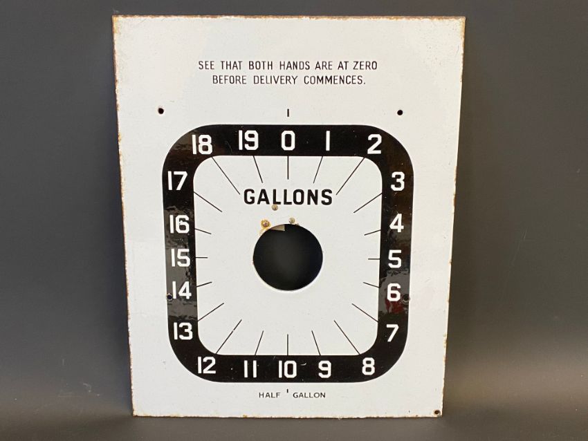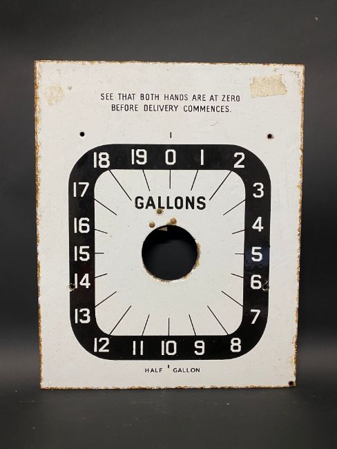 Two Avery Hardoll 101/598 enamel petrol pump dials, each 11 x 13 3/4".