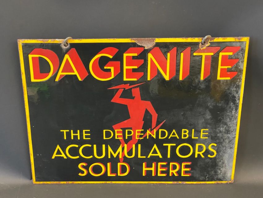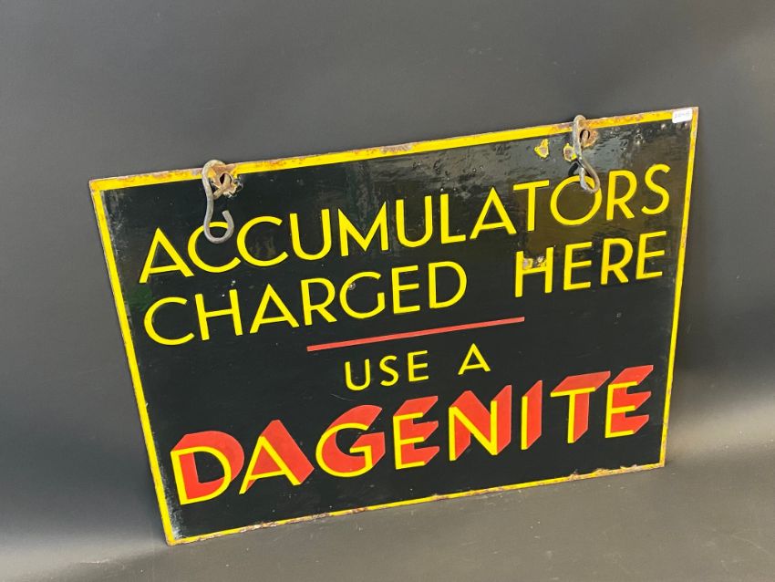 A Dagenite Dependable Accumulators rectangular double sided enamel sign, 20 x 15".