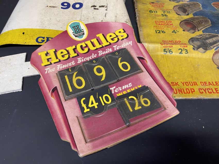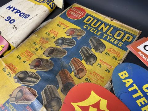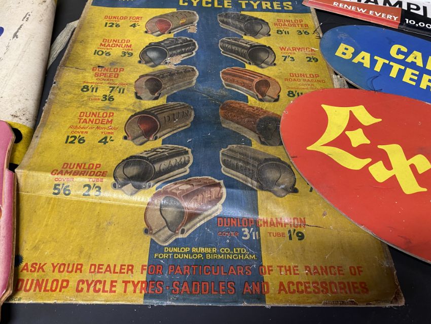 A Dunlop Cycle Tyres pictorial advertisement, plus various other showcards etc.
