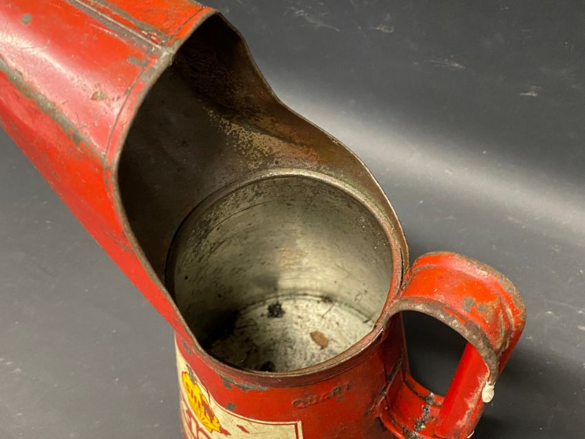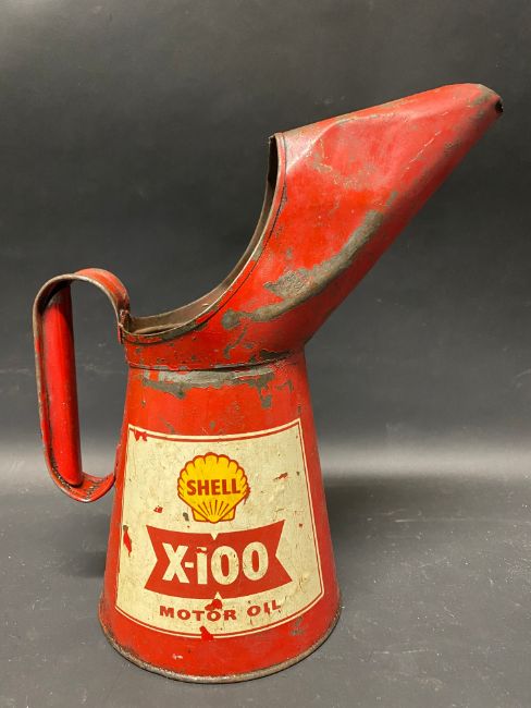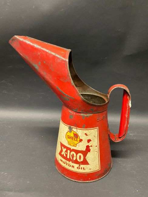 A Shell X-100 Motor Oil quart measure.