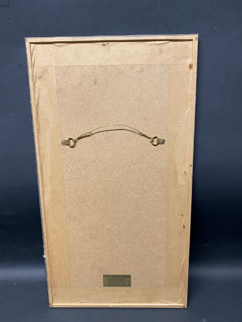 A framed reproduction of a 1930s Shelsley Walsh advertisement, 12 1/2 x 22 3/4".