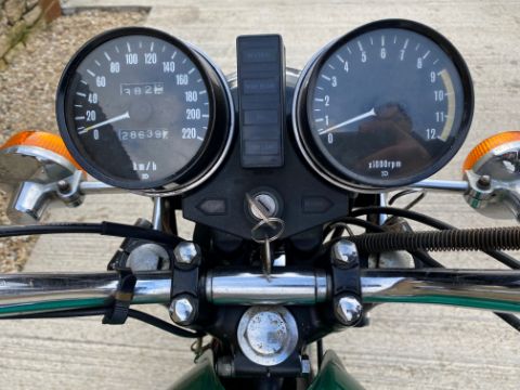 1977 Kawasaki KZ 650 B1Reg. no. UAL 272RFrame no. KZ650B 014674Engine no. KZ650BE 017771The Kawasaki Z650 was a scaled down version of the very successful Z1 and shares not only a great deal of its looks but also like its big brother, has excellent handling and performance. Its 64 bhp engine was capable of 120mph and although the single front disc was adequate for the machine’s performance, Kawasaki supplied the bikes with the right fork leg ready equipped to bolt on a second caliper to enhance the braking even further if required.This motorcycle was previously registered in the City of Toronto in Canada until 2021 when it was imported to the UK. It is unrestored and has retained many of its original parts. The current owner has ridden and enjoyed the bike throughout last summer and has described it as being in good overall condition, the engine runs smoothly with no rattles and it handles well. There is a dent on the right-hand side of the fuel tank.Comes with – a current V5C, importation documentation, a verification certificate of year manufactured from the ‘Vintage Japanese Motorcycle Club’, its original manual and toolkit and its two original keys that fit all the locks.Estimate: £3,600 – 4,600To be auctioned along with a fantastic selection of other vehicles on March 5th at our Showell Farm site, SN15 2NU. Viewing is welcome prior to sale and all cars are sold as seen, condition reports can be requested on each lot by contacting us direct. Lots are not available to buy prior to auction. Fully illustrated catalogue is available on the Richard Edmonds Auction website. Bids can be made online, by telephone or live on site. All lots are subject to commission.Vehicles that are un-registered or on foreign plates may require Import Duty and Vat to be paid upon purchase via HMRC prior to registering with the DVLA for a UK plate, if you are not sure please ask. For classic cars over 30 years this equates to 5% Duty on the final value.