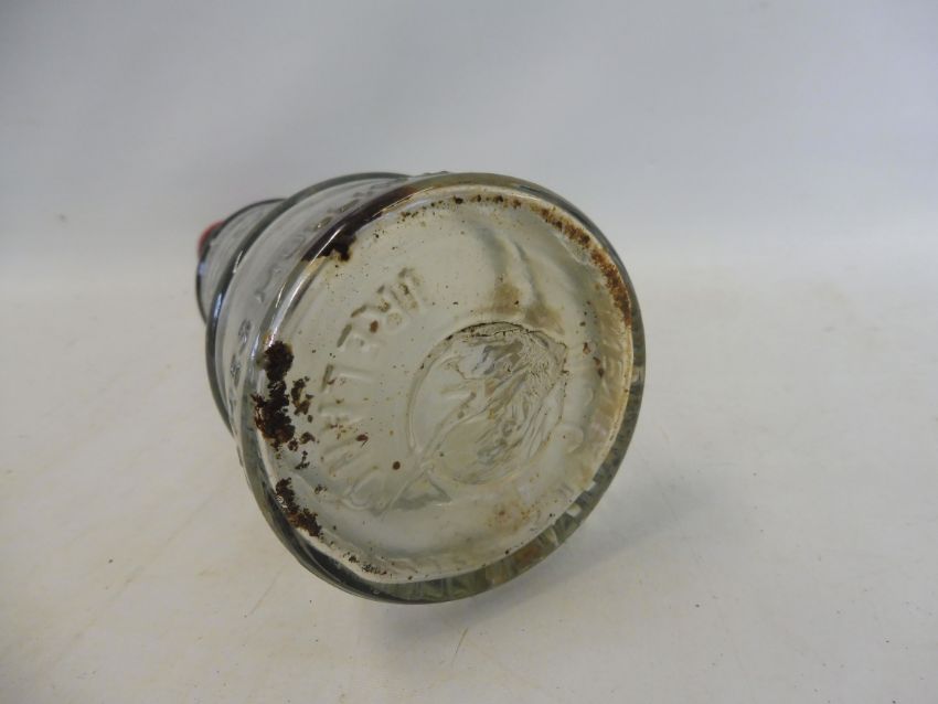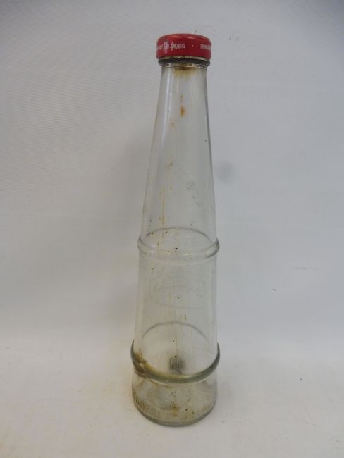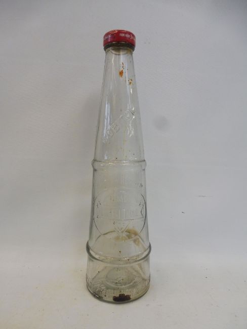 A Lobitol conical glass oil bottle.