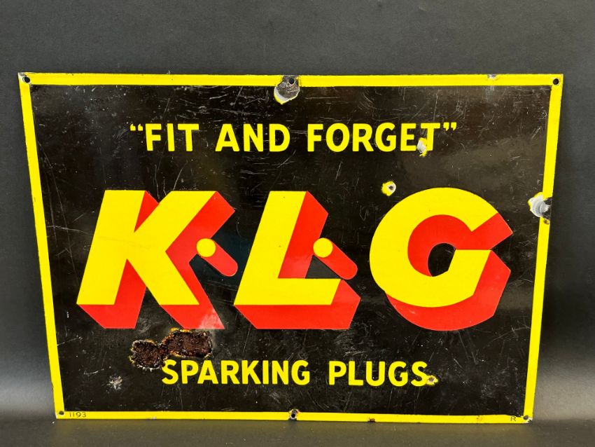 A KLG Sparking Plugs rectangular enamel sign, 20 x 14".