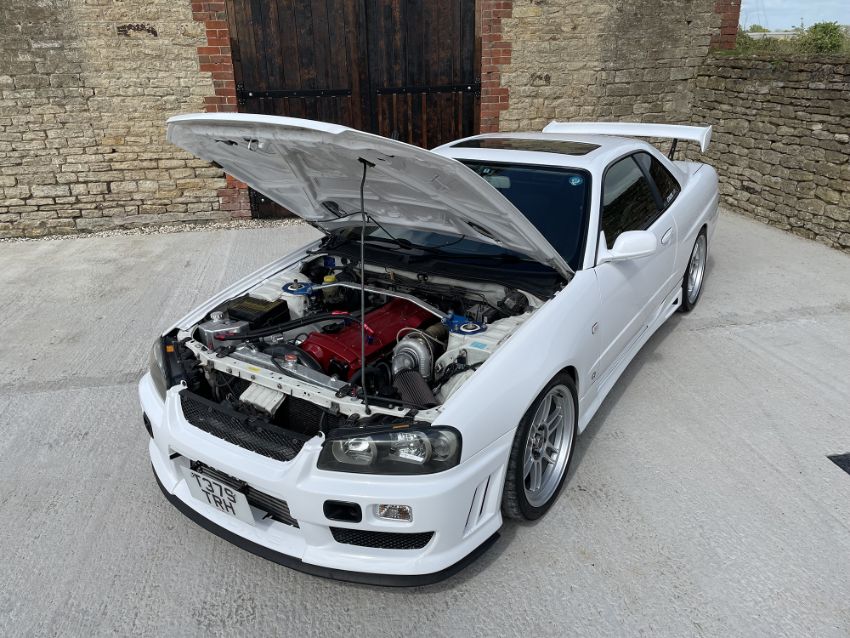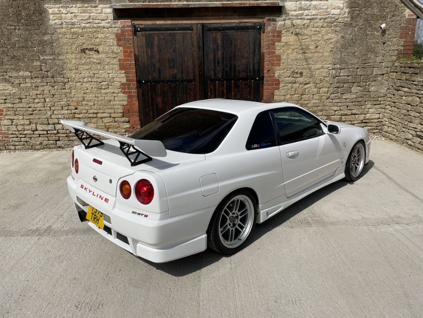 131999 Nissan Skyline R34 GTTReg. no. T379 TRHChassis no. ER34-025887Engine no. RB25DETTransmission: ManualMileage: 94,500 (Mix of kms & miles)MOT: October 2023The Nissan Skyline will be forever etched in the sands of time as one of the most iconic Japanese cars ever produced. The R34 generation is one of the most popular, thanks to an excellent motorsport heritage and of course the F.&F. franchise resulting in one of the fastest climbing investment cars currently available, heightened now that the R34 is becoming legal to import and own in the USA as it reaches its key 25 years of age.This GTT, single turbo, rear wheel drive example was first registered in Japan in July of 1999 so will be legal to export to the states within the next 12 months, which is likely to automatically increase its value. It was imported by Torque-GT in March of 2015 and has only had two UK owners. It has been with its current owner since 2018 and has been developed as a fast road car with occasional track use. As a result, the car has been very well maintained as well as many top-quality parts being added to ensure it handles as well as it goes. The vendor recollects that the car had covered around 80,000 kms (49,709 miles) when imported before it was converted to miles; this would put the car at around 65,000 miles in total.The Nissan RB25 DET is a 6-cylinder, turbo engine that is well known for offering lots of potential power whilst remaining reliable. The power of this engine has been vastly increased; internal changes include Tomei Type B Poncams, Cosworth headgasket and ARP studs. 1000cc injectors are fitted, combined with a Garrett G30-660 roller bearing turbo. Supporting modifications also include Walbro fuel pump, 6-Boost top mount manifold, RB build throttle body, plenum, fuel rail and 3” stainless exhaust system. The whole setup runs on a Link G4 ECU with two maps, one set for 500bhp and the other for 573bhp. Cooling is assisted by a large FMIC, alloy radiator and Mocul oil cooler.Of course, running all that power requires handling and braking upgrades as well, where no expense has been spared. Helping put the power down is an extreme organic clutch kit, Cube short shift kit, custom prop shaft and 1.5-way KAZ LSD with full poly bush kit and Whiteline anti-roll bars. BC coilovers and Cusco strut brace finish off the list of handling changes aside from the very grippy Yokohama AO52 tyres that wrap the Enkei wheels. K sport 356mm front brake setup and R33 GTR rear setup offer the stopping power. The listed modifications and no-expense-spared maintenance mean this car drives very well on road and track with no issues to report.Externally the car is in stunning condition with a recent front end respray to eradicate any stone chips. It features factory option body kit, Xenon headlights, electric folding mirrors, air conditioning and rare option sunroof. Additions include custom fibreglass bonnet for weight loss and cooling as well as clear front and side indicators for a more up-to-date look. Much of the interior was removed previously to cavity wax any internal bodywork to ensure it is well protected. The underside of the car remains in excellent order. The interior is very well presented and features Recaro SP4 seats sat on Bride seat rails and a well-hidden, but quite expensive, Pioneer sound system with DVD head unit.The sale includes a current V5C document, history including receipts from renowned South-West Skyline specialist Bells Auto Services, who carried out the top mount turbo conversion just over 12 months ago to the tune of £8,500 which of course included fresh mapping. History also includes some original Nissan booklets, import paperwork as well as a spare key and alarm fob. All in all, this is a well-presented example of the R34 with phenomenal performance that is ready to be cherished and enjoyed by its new owner.Estimate: £36,000 - 40,000To be auctioned along with a fantastic selection of other vehicles on July 1st at our Showell Farm site, SN15 2NU with viewing on the 29th and 30th of June, you can also join us at our Nostalgia Social cars & coffee event on June 25th. Viewing is welcome prior to sale and all cars are sold as seen, condition reports can be requested on each lot by contacting us direct. Lots are not available to buy prior to auction. Fully illustrated catalogue is available on the Richard Edmonds Auction website. Bids can be made online, by telephone or live on site. All lots are subject to commission. Vehicles that are un-registered or on foreign plates may require Import Duty and Vat to be paid upon purchase via HMRC prior to registering with the DVLA for a UK plate, if you are not sure please ask. For classic cars over 30 years this equates to 5% Duty on the final value. For cars described as MOT exempt (pre-1983) these vehicles may need their exemption registered with the DVLA.