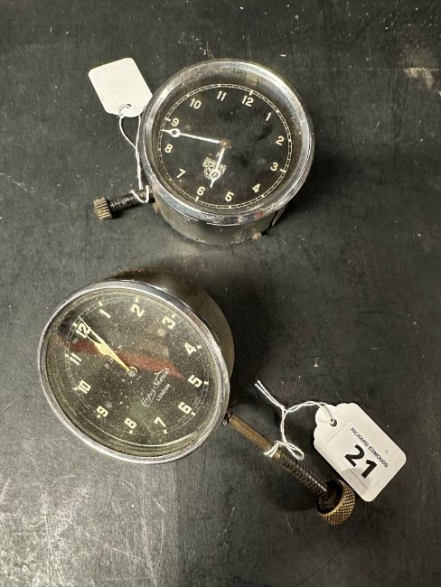 A Cooper Stewart eight day car clock and a Smiths MA car clock, both bottom wind.