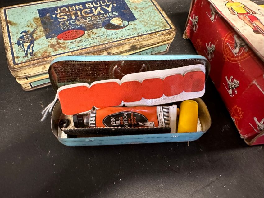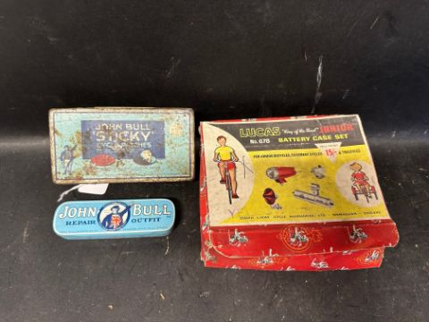 Cycling interest - a John Bull Sticky Patches and tyre repair outfit tin and a Lucas King of The Road Junior cycle lamp in original box (n.o.s).