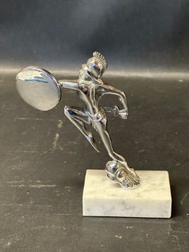 A car accessory mascot depicting a warrior holding a shield, by repute for British Salmson Motor Manufacturer.
