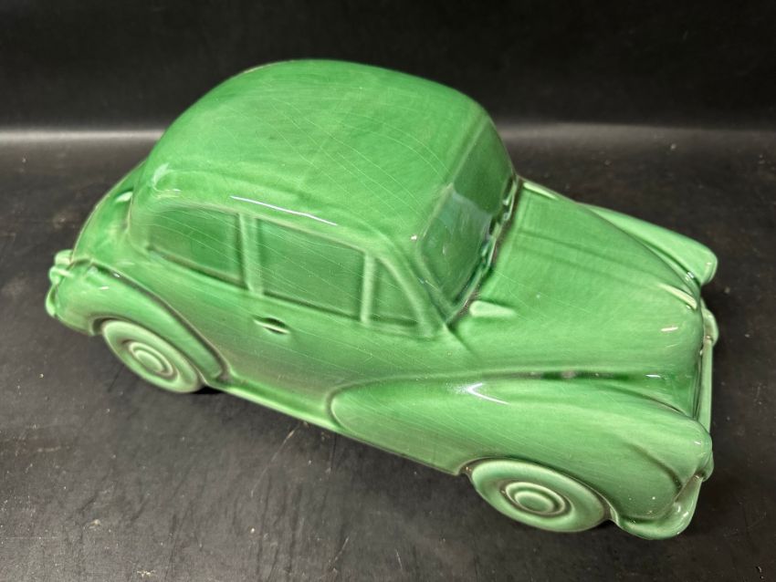 A Morris-Minor jade-coloured ceramic model, 15 1/2" long.