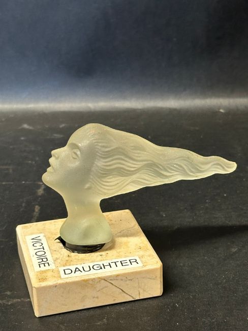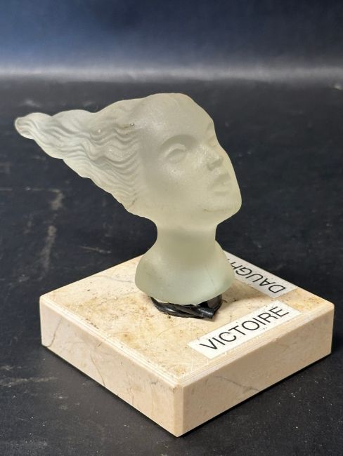 An Art Deco Speed Girl or Victoire glass car accessory mascot , mounted on base, unknown manufacturer.