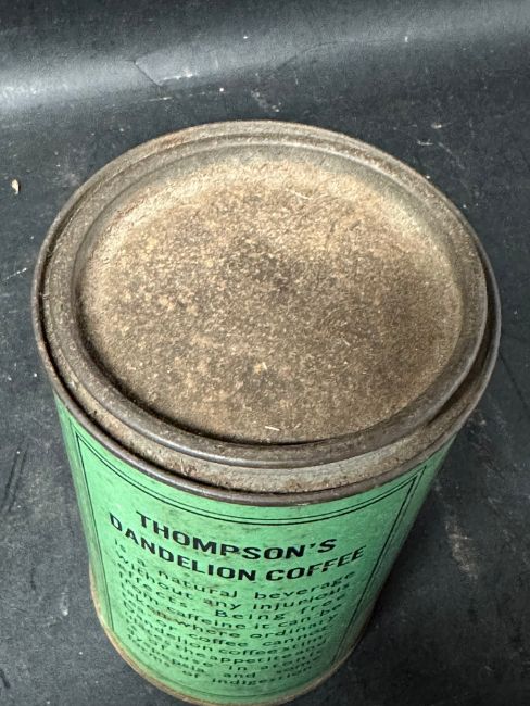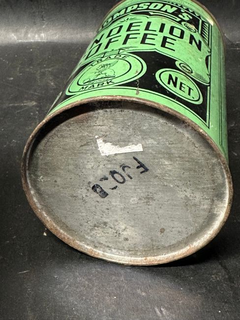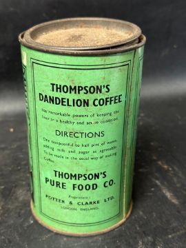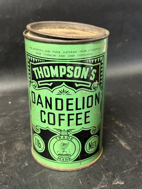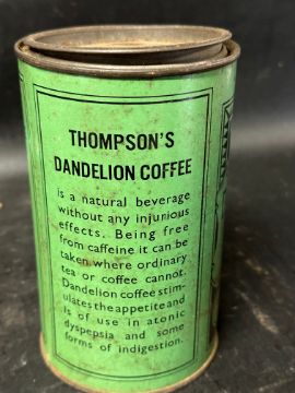 A Thompson's Dandelion Coffee 1lb tin 'for dyspetics and those suffering from indegestion, weak stomachs and liver complaints'