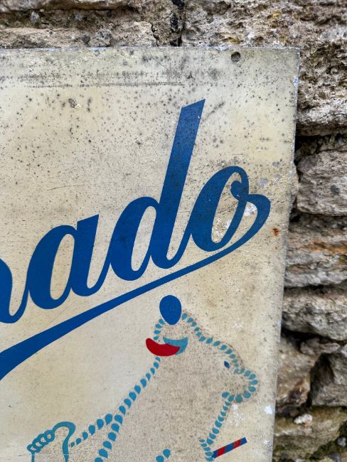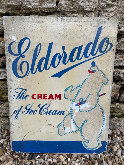 An Eldorado Ice Cream tin advertising sign depicting a dancing polar bear, 18 x 24".