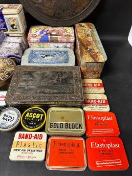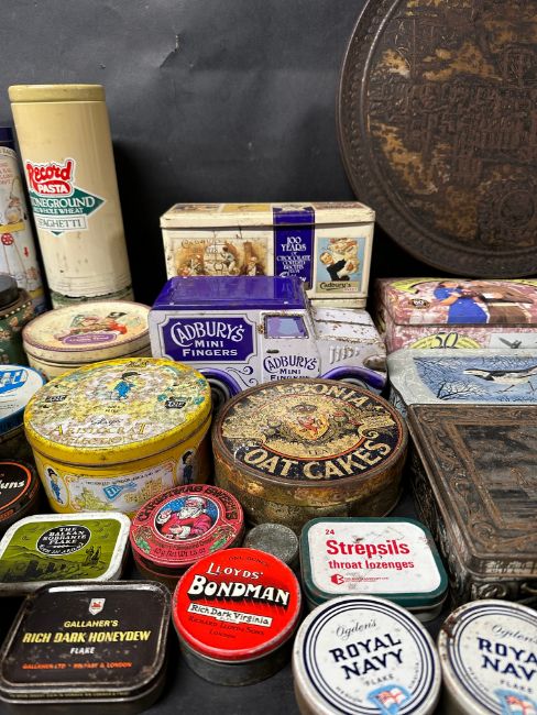 A selection of assorted tins to include Royal Navy, Ascot Gold Cut, Caledonia Oat Cakes etc.