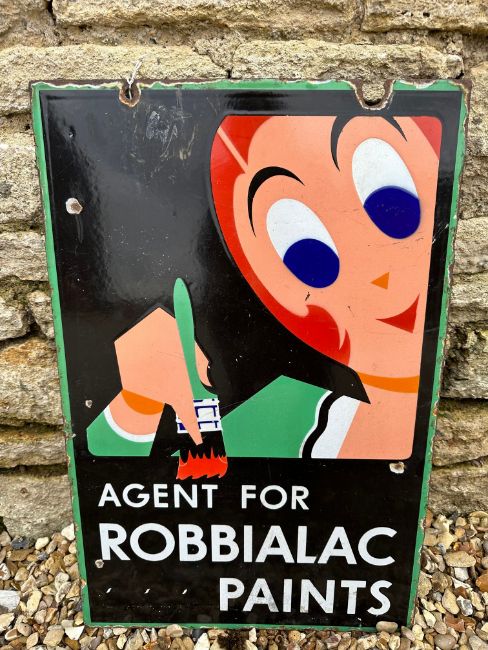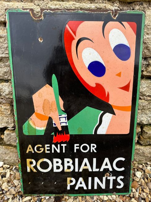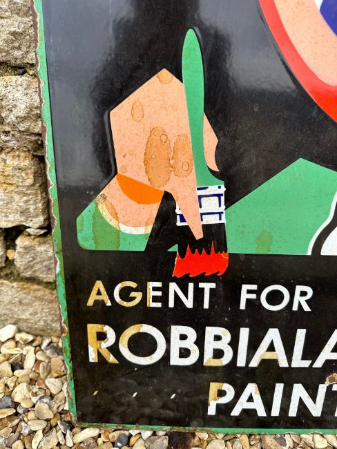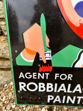 A Robbialac Paints double sided enamel advertising agent sign, 16 1/4 x 24 3/4".