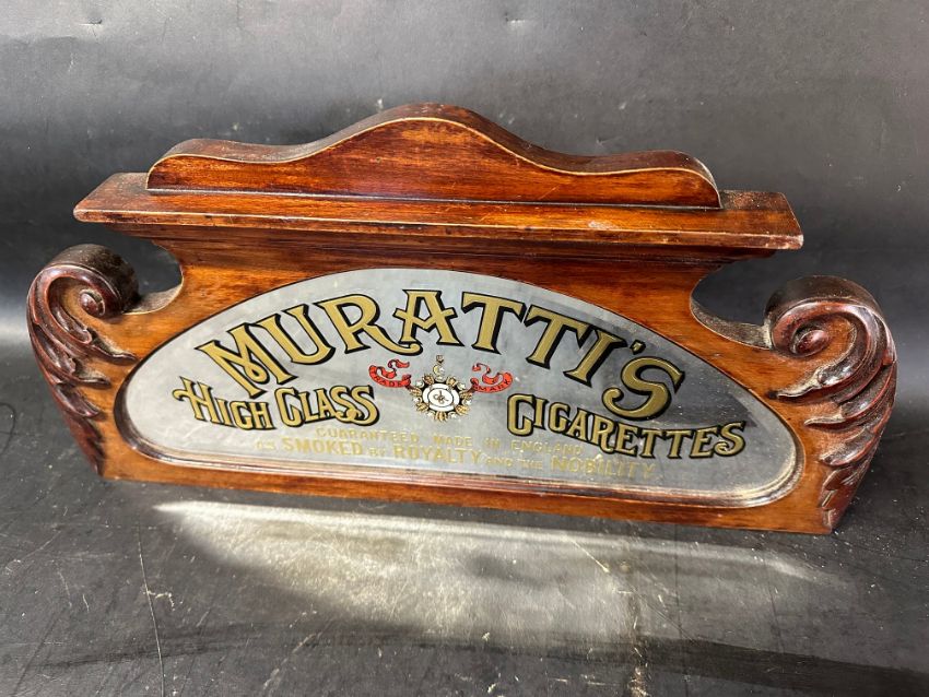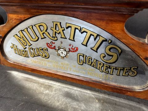 A Muratti's High Class Cigarettes bevelled edged mirrored cabinet top 'as Smoked by Royalty and the Nobility', 18 x 9".