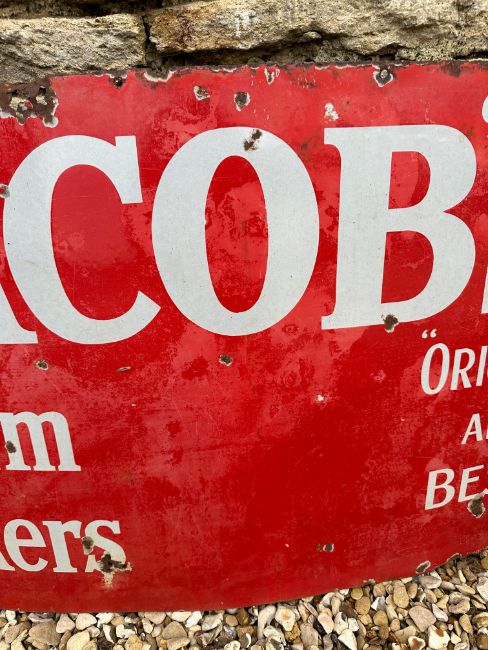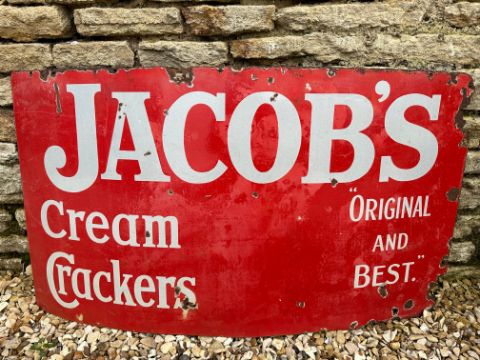 A Jacob's Cream Crackers 'Original and Best' enamel advertising sign, 44 x 24".