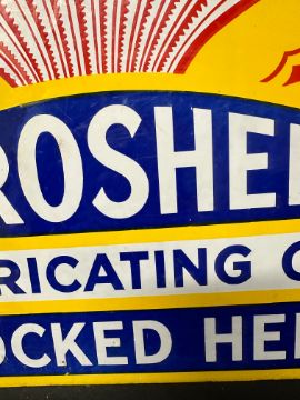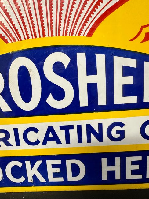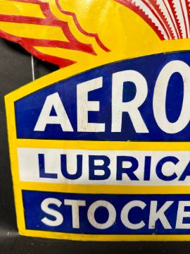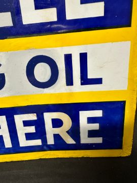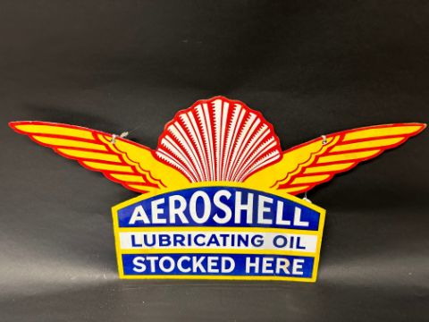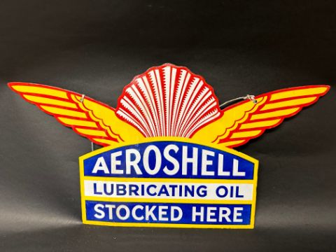 An Aeroshell Lubricating Oil double sided stockist's hanging enamel advertising sign, 28 1/4 x 15", some professional restoration.