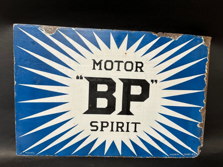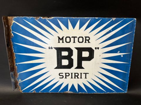 An Irish "BP" Motor Spirit 'flash' double sided enamel advertising sign by Franco Signs, repair made to flange, 24 x 16".