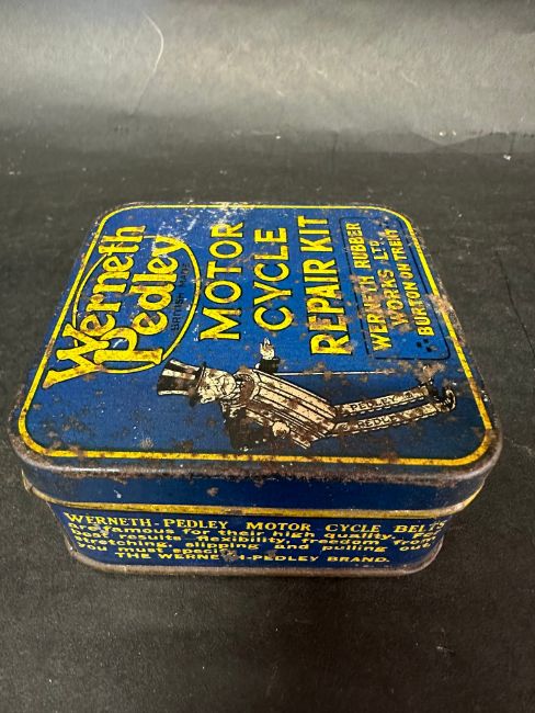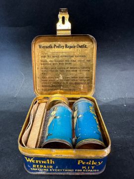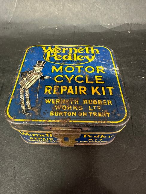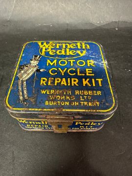 A Werneth Pedley Motor Cycle Repair Kit, unusually with contents .