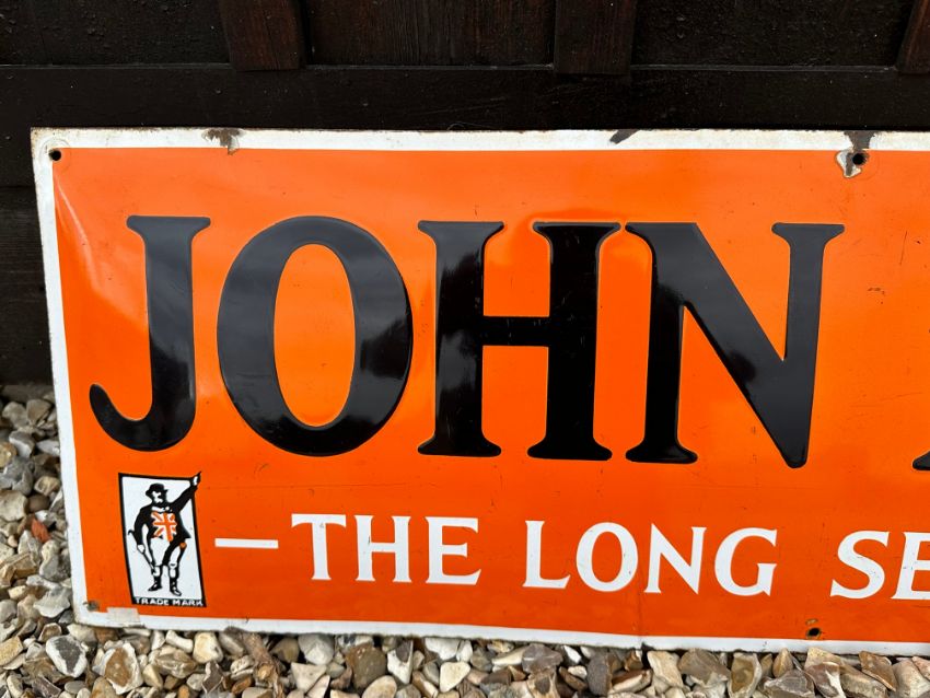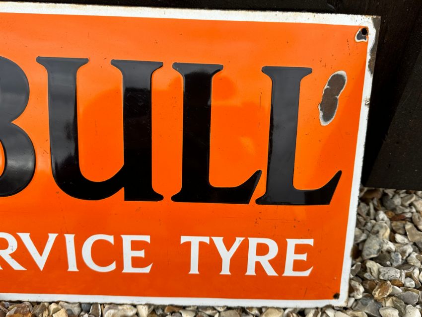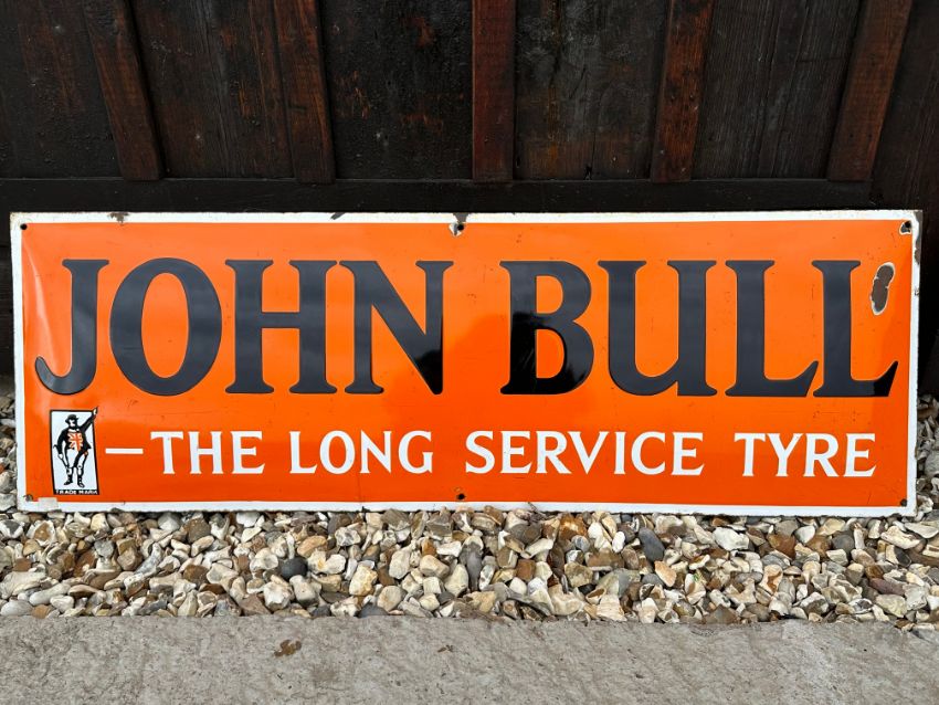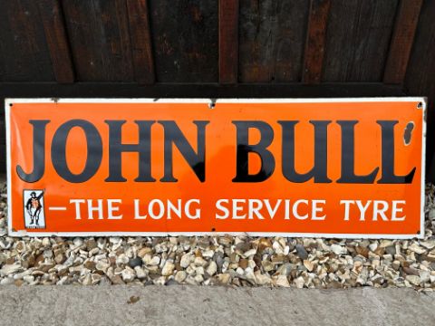 A John Bull (tyres) convex enamel advertising sign once owned by the Colyford Motor Museum, 36 x 12 1/4".