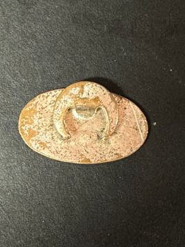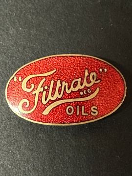 A Filtrate Oils enamel badge with moon crest attachment to reverse.