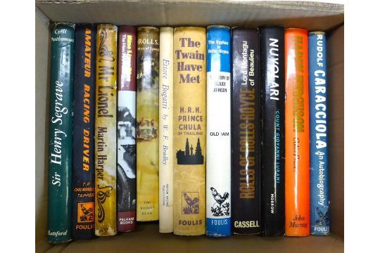 A box of biographies to include, The Twain Have Met, Nuvolari, Segrave, Caracciola, Rolls of Rolls-Royce, all with DJs (12).