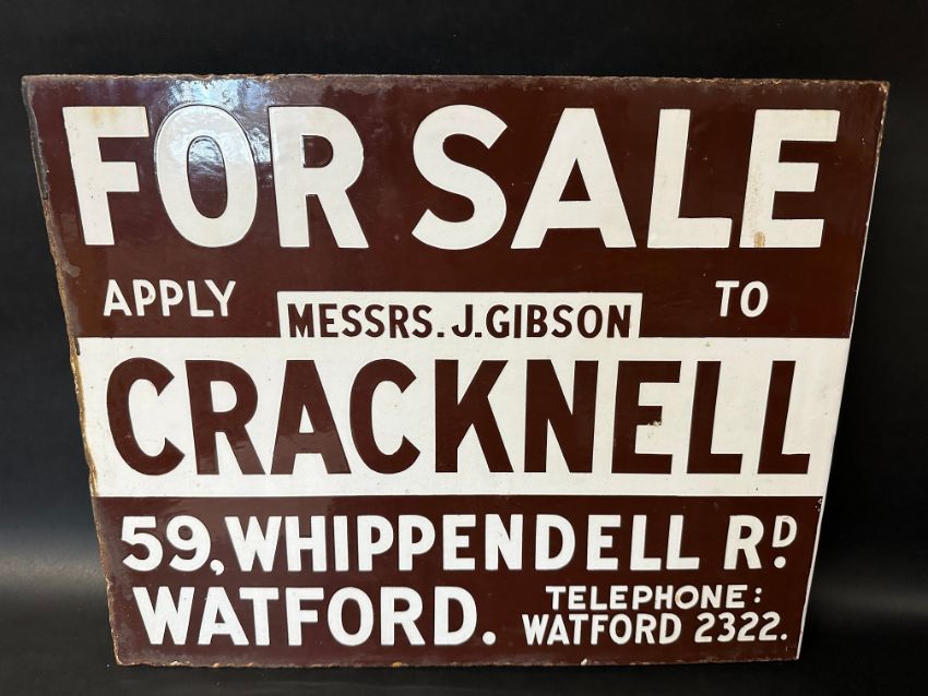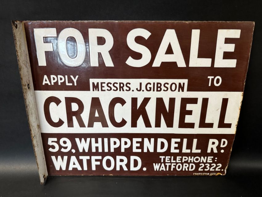 A Cracknell of Watford For Sale double sided enamel advertising sign by Protector Eccles, 20 x 16".
