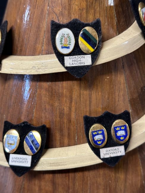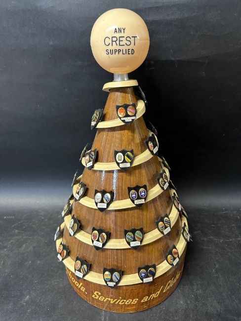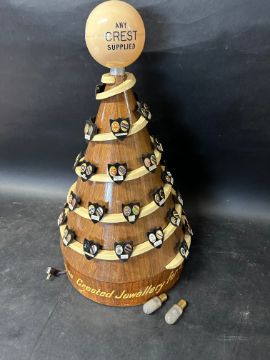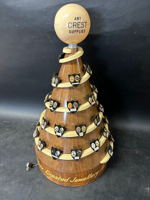 A rare shop counter top display illuminated advertising stand for Sophos Crested Jewellery 'Crested Jewellery for all Schools, Services and Clubs are the Ideal Gift...', in original crate of issue with pocket for bulbs and light cover. Includes samples for many of the UK top universities and independent schools.