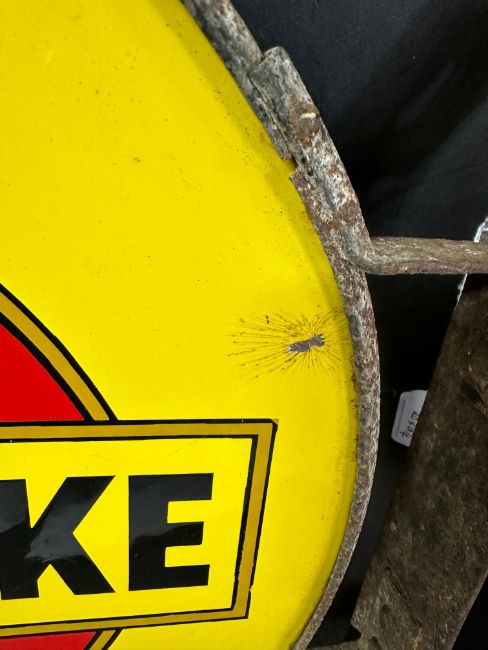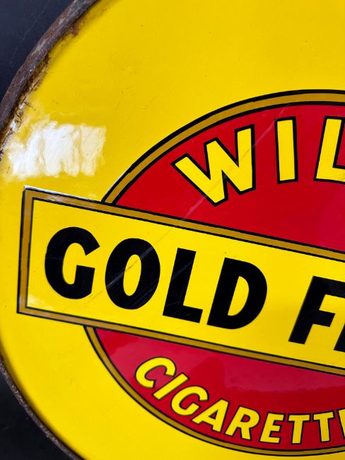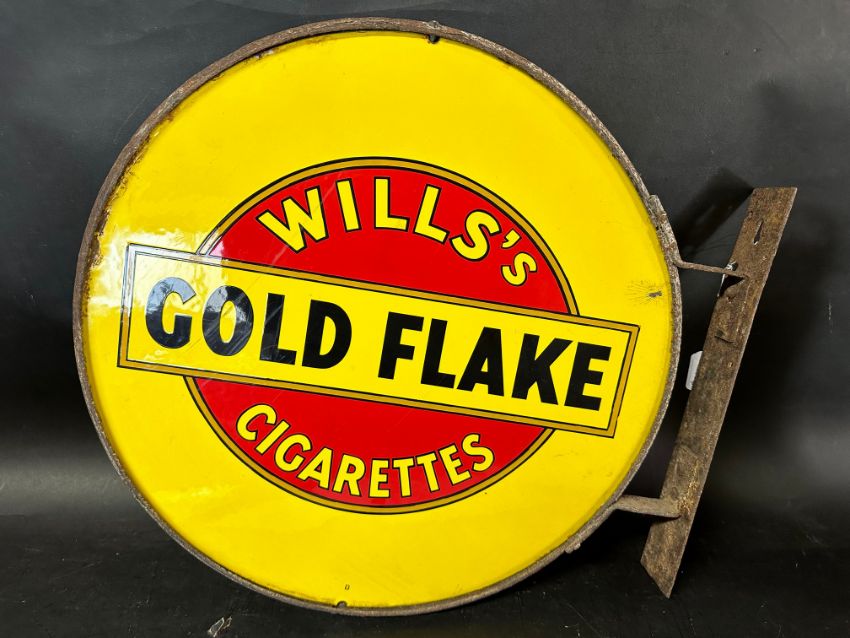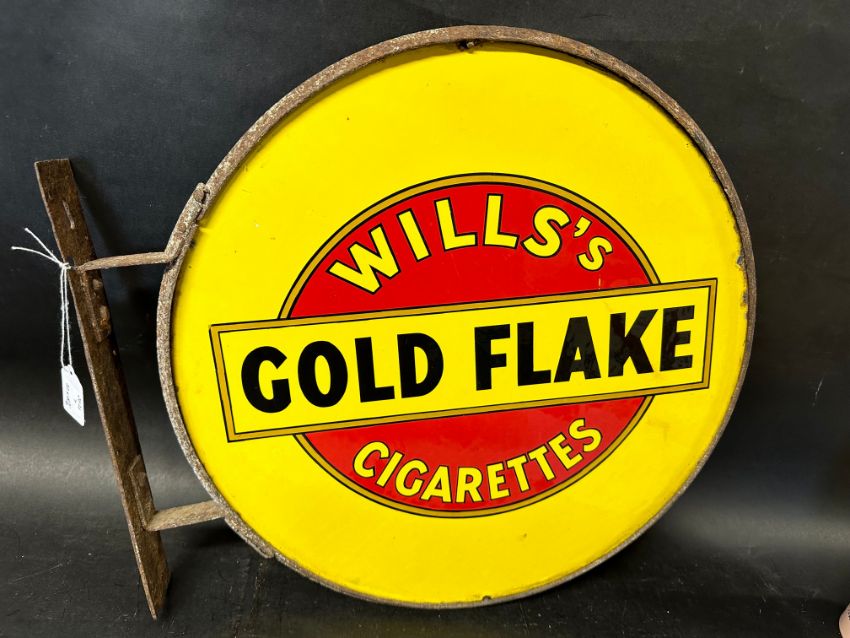 A Wills's Gold Flake Cigarettes circular double sided enamel advertising sign set within original metal frame, very good condition, 20 x 18 3/4" inc. frame.