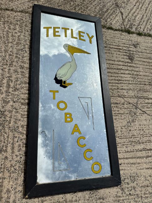 An Art Deco Tetley Tobacco advertising mirror with image of pelican to centre, 29 1/4 x 67".