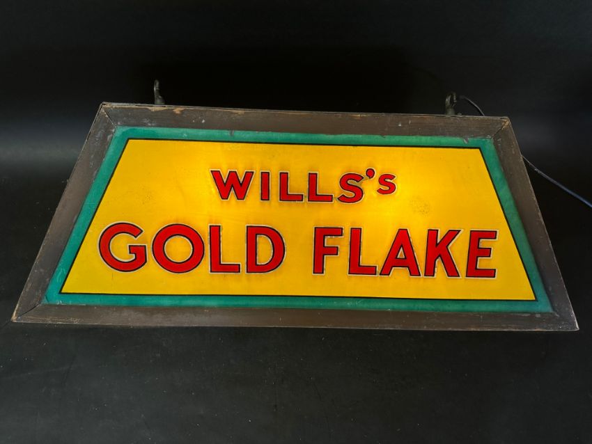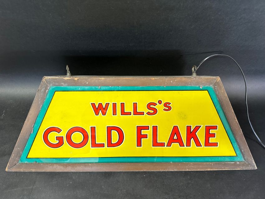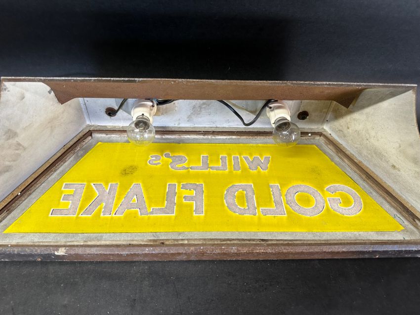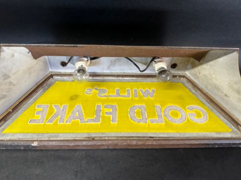 A Wills's Gold Flake glass fronted advertising hanging lightbox, 29 3/4 x 11 x 11".