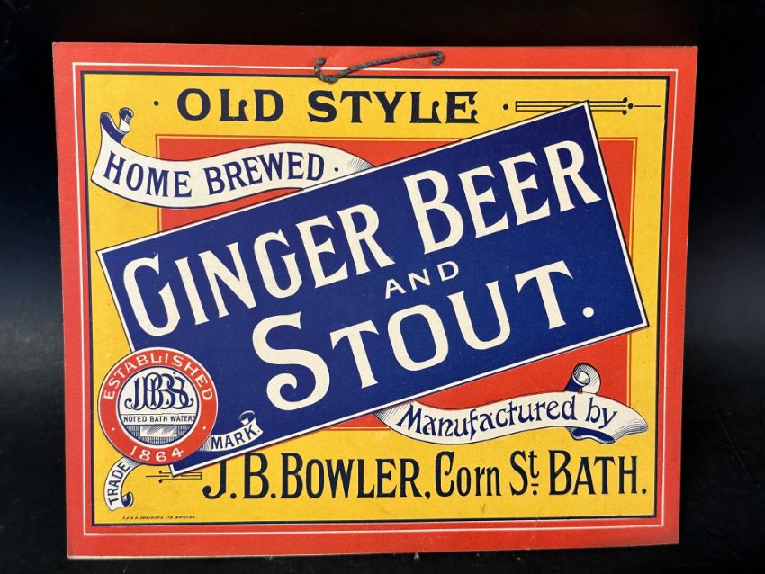 A J.B. Bowler of Corn St. Bath hanging showcard advertising their Ginger Beer and Stout, 11 3/4 x 9 1/2".