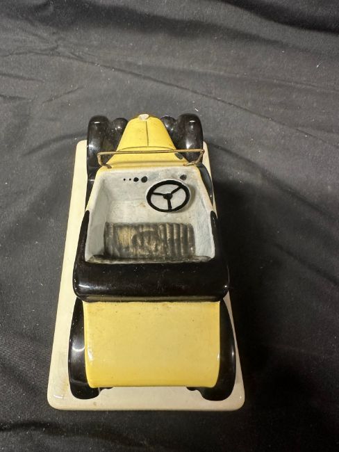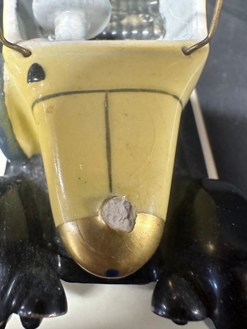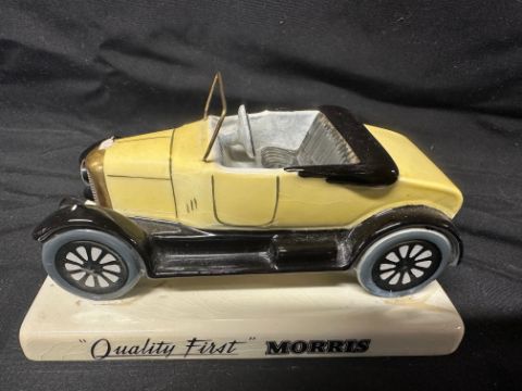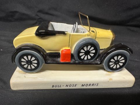 A Carltonware ceramic model of a Bull-nose Morris, by repute this was from the office of Lord Stokes of Leyland at Nutfield Exports, 41 Picadilly, London, slight damage (mascot missing), see pic.