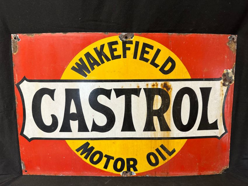A Wakefield Castrol Motor Oil enamel advertising sign, 29 1/2 x 19 1/2".