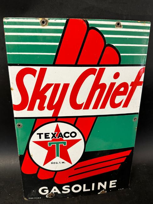 A Texaco Sky Chief Gasoline enamel advertising sign (USA), 12 x 18".