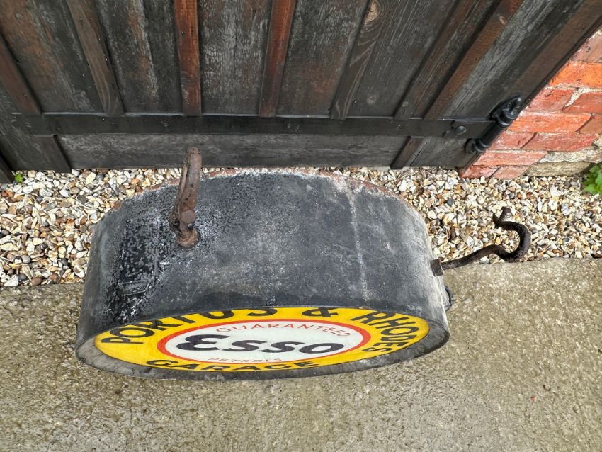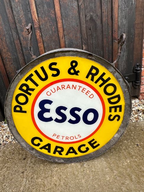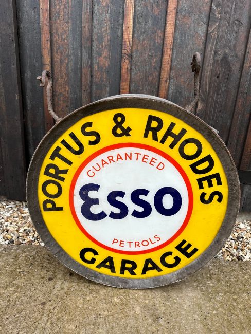 An Esso Petrols double sided hanging lightbox for Portus & Rhodes Garage, Garston, Liverpool, 24 1/2 x 31".